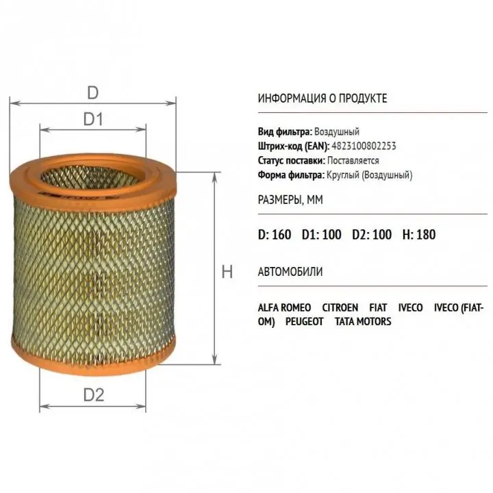 Фильтр воздушный Citroen Jumper I 1,9 D, Fiat Ducato 1,9 D, IVECO 49-10, Peugeot Boxer I 2,5 DT, Tata Sierra 1,9 TD Альфа ALPHA FILTER AF0027