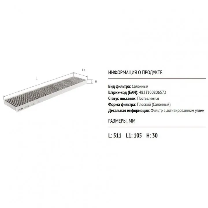 Исполнение фильтра: Салонный фильтр тонкой очистки