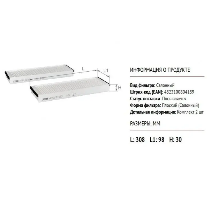 Фільтр салону Audi A6 04-11/VW XL1 13- (к-кт 2 шт.) ALPHA FILTER AF5133