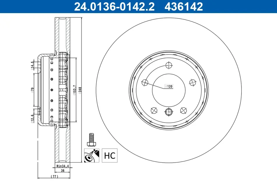TARCZA HAM PRZOD 348X36 V 2-CZESCI ATE 24013601422