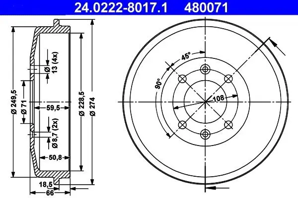 Тормозной барабан ATE 24.0222-8017.1