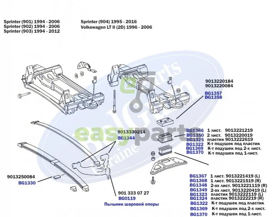 Вы можете подобрать антискрип MB Sprinter 901-904 (для передньої 2-ох листової ресори) для вашего авто одним из удобных для вас способов: