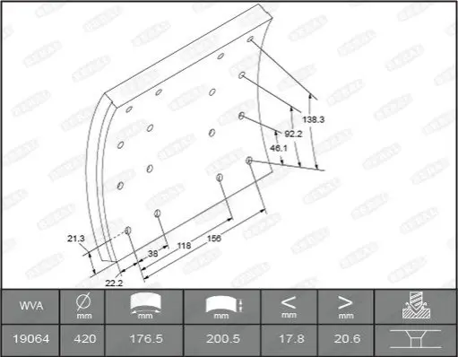 Тормозная колодка: Стандартный размер, с серповидными накладками