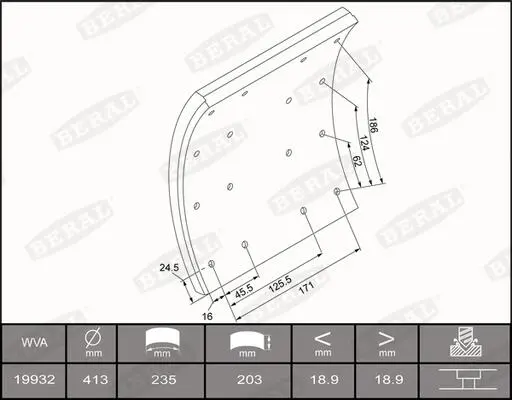 Накладки тормозные WVA19932 необходимы заклепки: 6.65x18 64шт BERAL KBL19932.1-1660