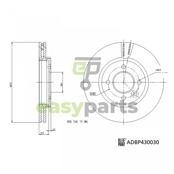 MG Гальмівний диск передн. MG 3 1.5 16- BLUE PRINT (Блю Принт) ADBP430030