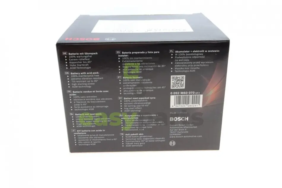 Аккумулятор сухозаряженный AGM 6Ah 105А BOSCH (Бош) 0092M60070