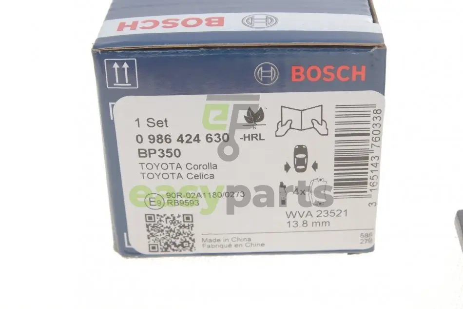 Колодки гальмівні (задні) Toyota Corolla 01-08/Camry 82-86/Yaris/Celica 99-05 (Akebono) BOSCH (Бош) 0986424630