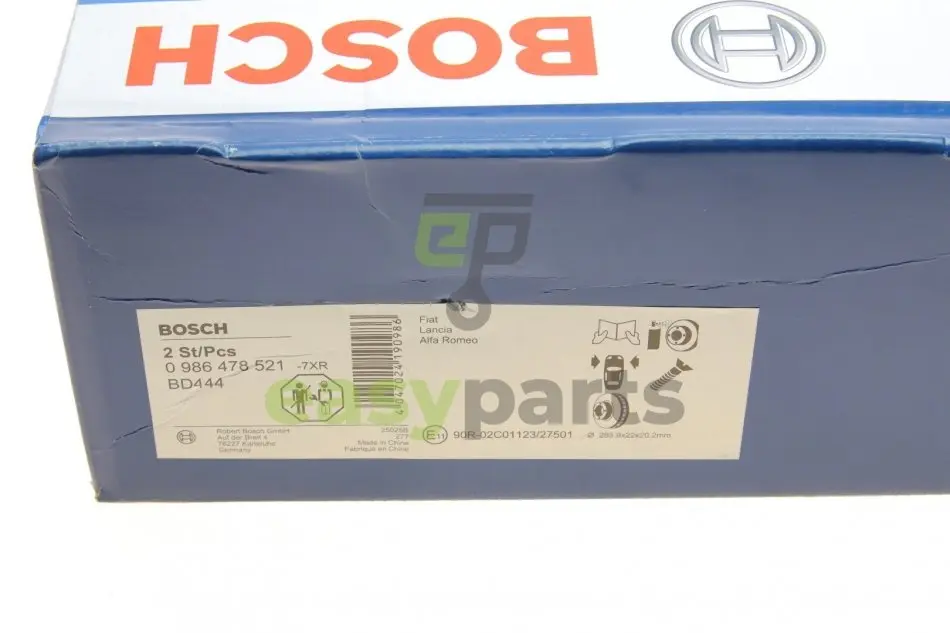 Диск гальмівний (передній) Fiat Doblo/Fiorino/Qubo 07-/Opel Combo 12- (284x22) (з покриттям) (вент.) BOSCH (Бош) 0986478521