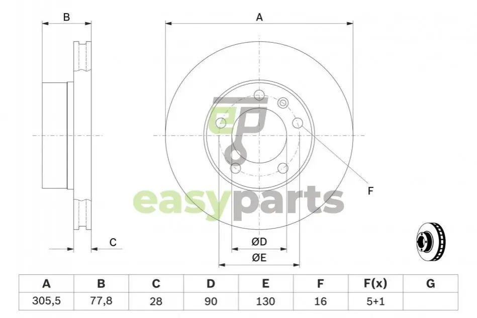 Толщина тормозного диска (мм): 28.0
