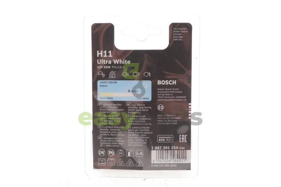 Автолампа H11 12V 55W PGJ19-2 Ultra White (BL/1шт) BOSCH (Бош) 1987301154