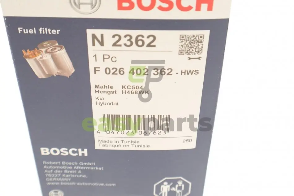 Фільтр паливний Hyundai Elantra/i30/i40/Santa Fe 1.4-1.2CRDi 11-/KIA Sorento 2.2 CRDi 15- BOSCH (Бош) F 026 402 362