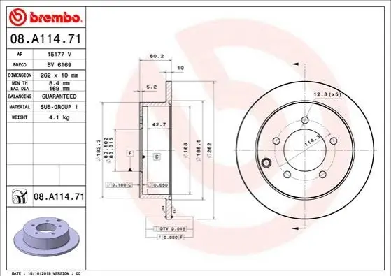 Тормозной диск BREMBO (Брембо) 08.A114.71