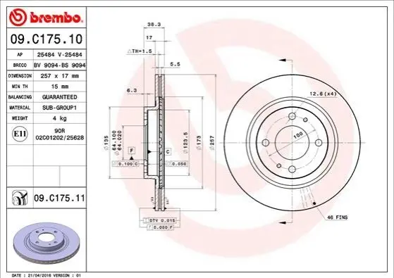 Диск гальмівний BREMBO (Брембо) 09.C175.11