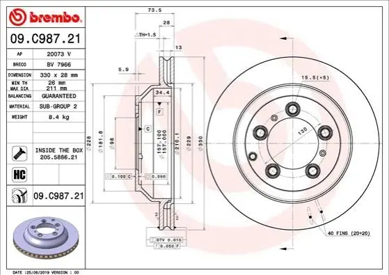 - 09.C987.21 BREMBO (Брембо) подходит к таким маркам/моделям авто: