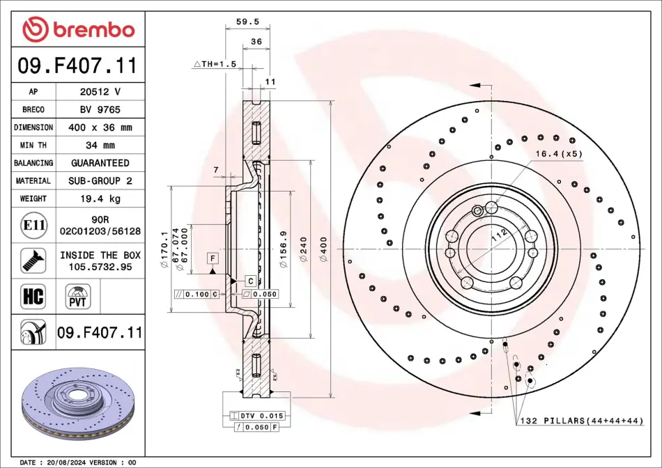 Tarcza ham. MERCEDES-BENZ GLE (V167) 10/18-> / MERCEDES-BENZ GLE Coupe (BREMBO (Брембо) 09F40711