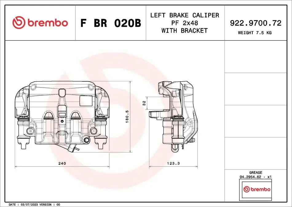 ZACISK HAMULCOWY IVECO DAILY VI VAN 03/14- / IVECO DAILY VI PLATFORM/CHASSIS 03/14- / IVECO DAILY V VAN 09/ SZT BREMBO (Брембо) FBR020B