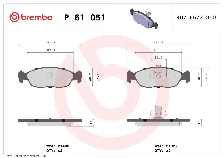 - P61 051 BREMBO (Брембо) подходит к таким маркам/моделям авто: