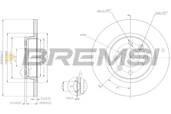 Гальмівний диск перед. Logan/Sandero 04- (259x12) BREMSI CD7502S