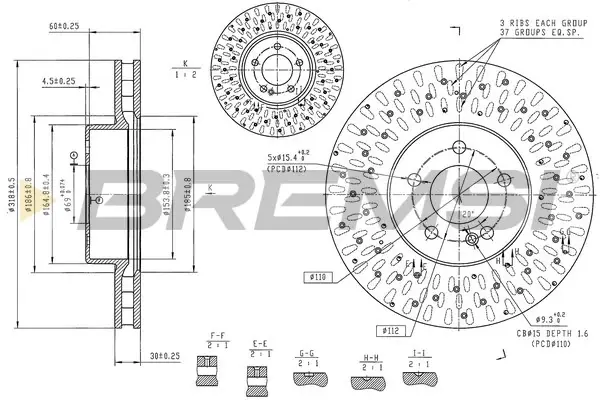 Гальмівний диск перед. MB C-class (W205) 2.0 13-18 (318x30mm) BREMSI CD8838V