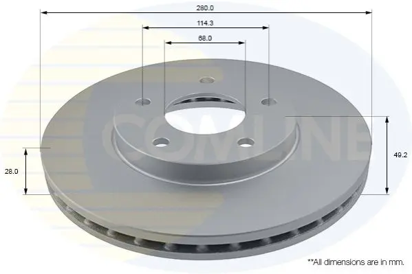 - Диск гальмівний вентильований з покриттям Comline ADC0260V