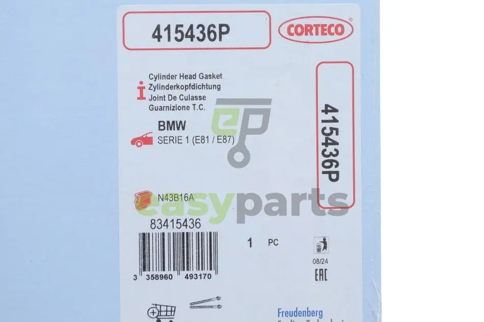 Прокладка ГБЦ BMW 1 (E81/E87)/3 (E90) 07-11 N43 B16 CORTECO (Кортеко) 415436P