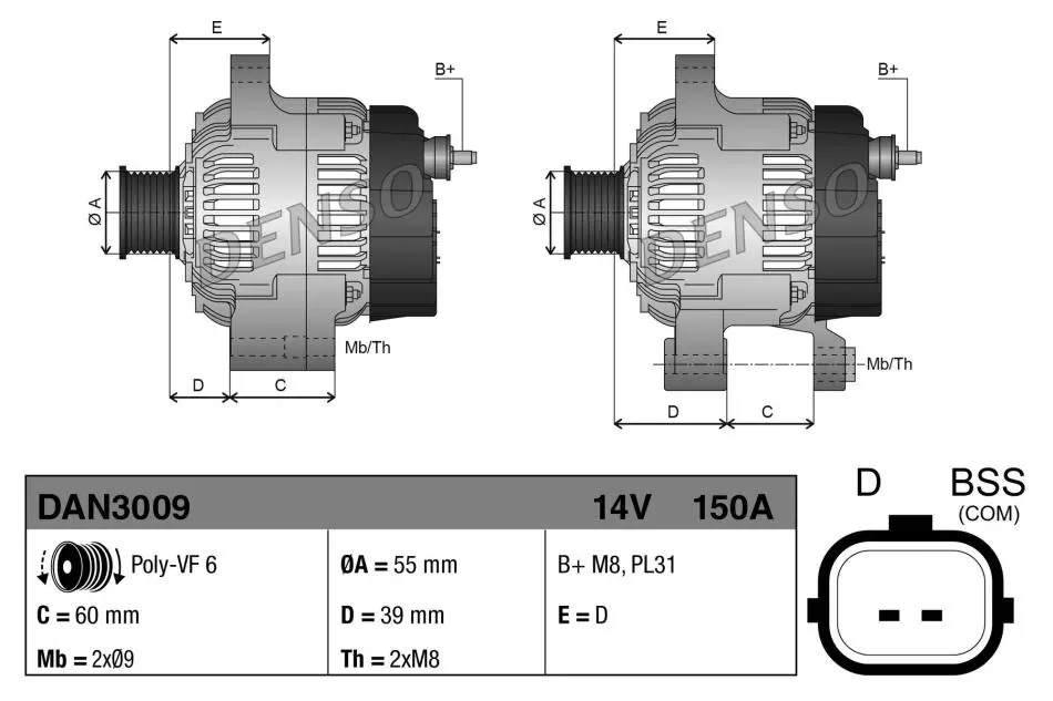 Alternator MEGANE III 08-.. DENSO (Денсо) DAN3009