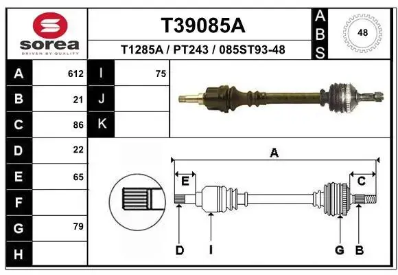 Привідний вал -Ціна за цей товар формується з двох складових: Ціна на сайті + додатковий платіж. Остаточну ціну дізнавайтесь у менеджера EAI T39085A