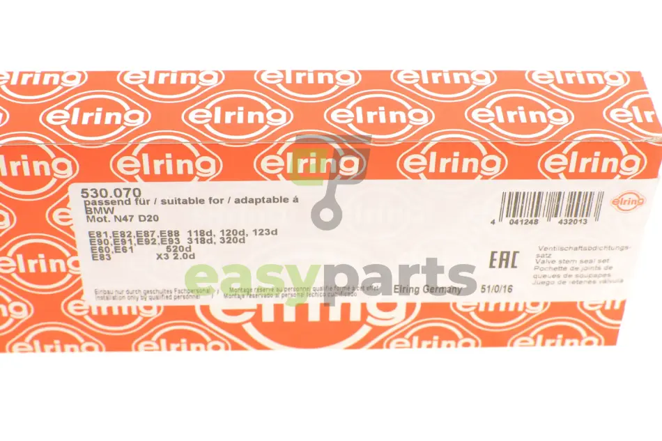 Сальник клапана (впуск/випуск) BMW 3 (F30/G20/G80)/5 (F10/G30/G90)/7 (G11/G12) 10- (к-кт 16шт) N47 ELRING (Елринг) 530.070