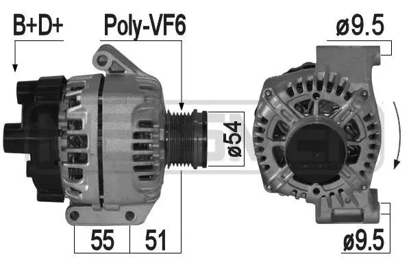 Генератор Citroen Nemo 1.3 HDI 75 10- Fiat Fiorino 1.3 Multijet 07- 1608858080, 51829383, 51944878 ERA (Ера) 209225A