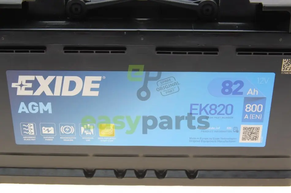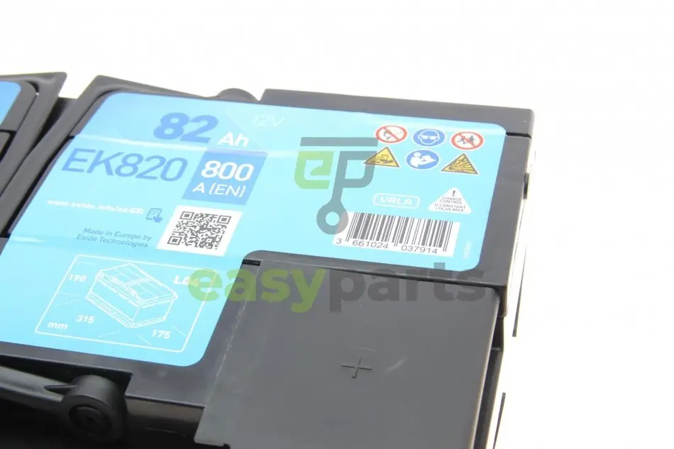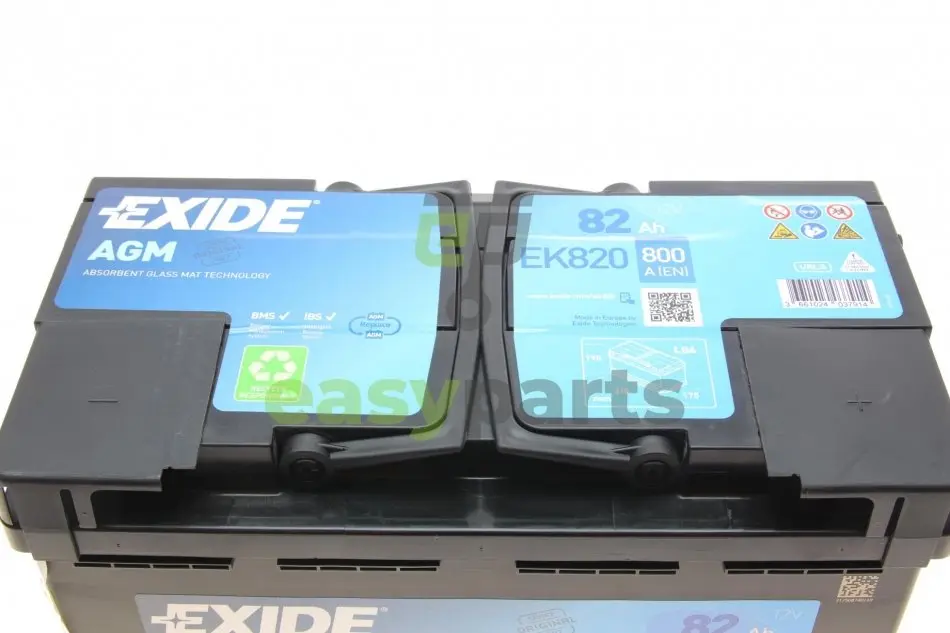 Акумуляторна батарея 82Ah/800A (315x175x190/+R/B13) (Start-Stop AGM) (аналолг EK800) EXIDE EK820