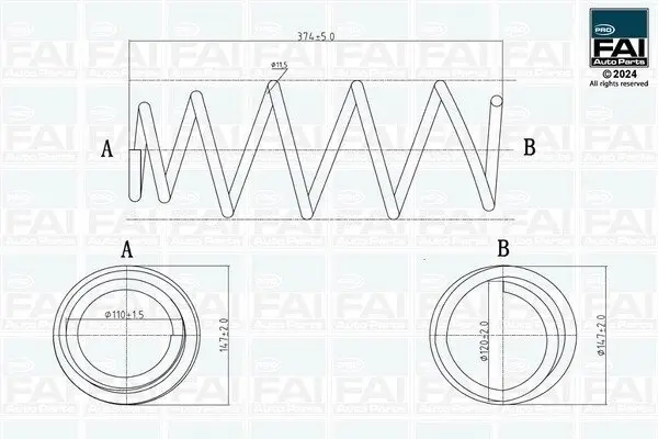 TOYOTA пружина передня L=374mm Yaris 05- FAI FPCS146