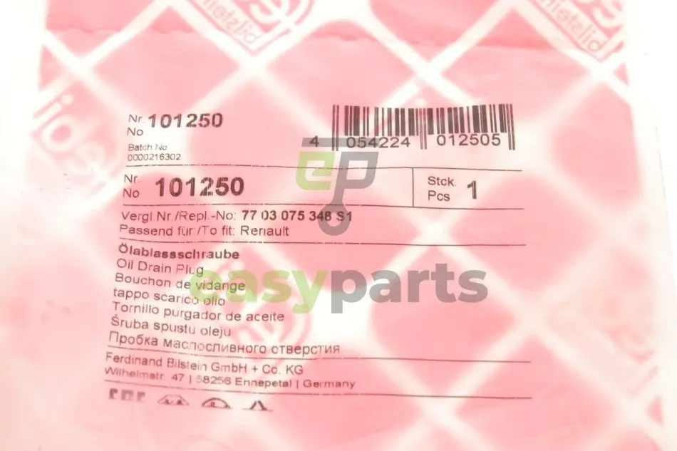 Болт зливу оливи Renault Trafic 01- (+шайба) (M16x1.5) FEBI BILSTEIN 101250
