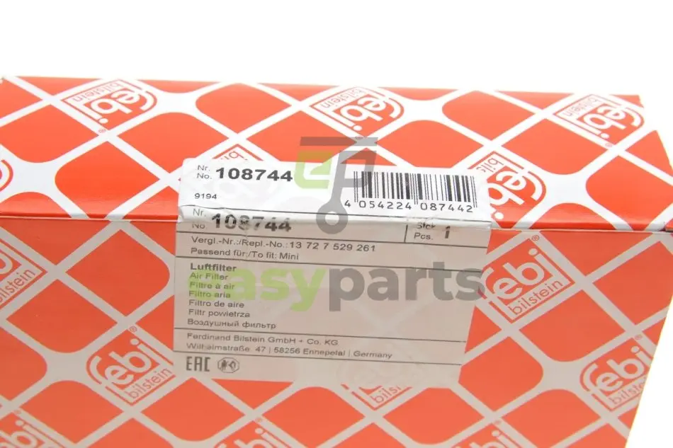 Фільтр повітряний Mini Cooper/One 1.6 01-08 FEBI BILSTEIN 108744