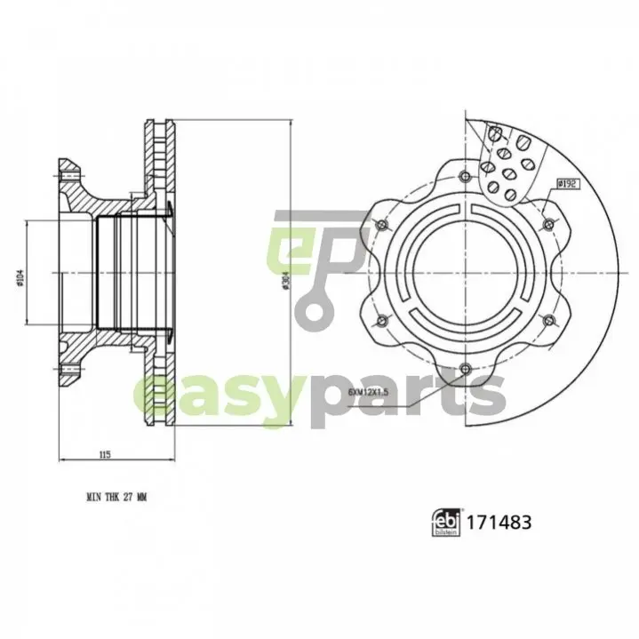 Диск гальмівний (задній) MB Sprinter 616CDI 01- (304х30) FEBI BILSTEIN 171483