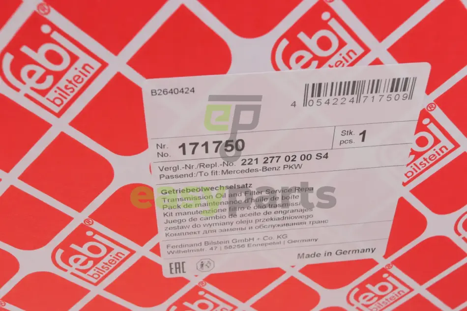 Комплект для заміни оливи АКПП MB C (W203/204)/E (W211/212)/S (W220/221)/Sprinter 906 1.6-6.2 FEBI BILSTEIN 171750