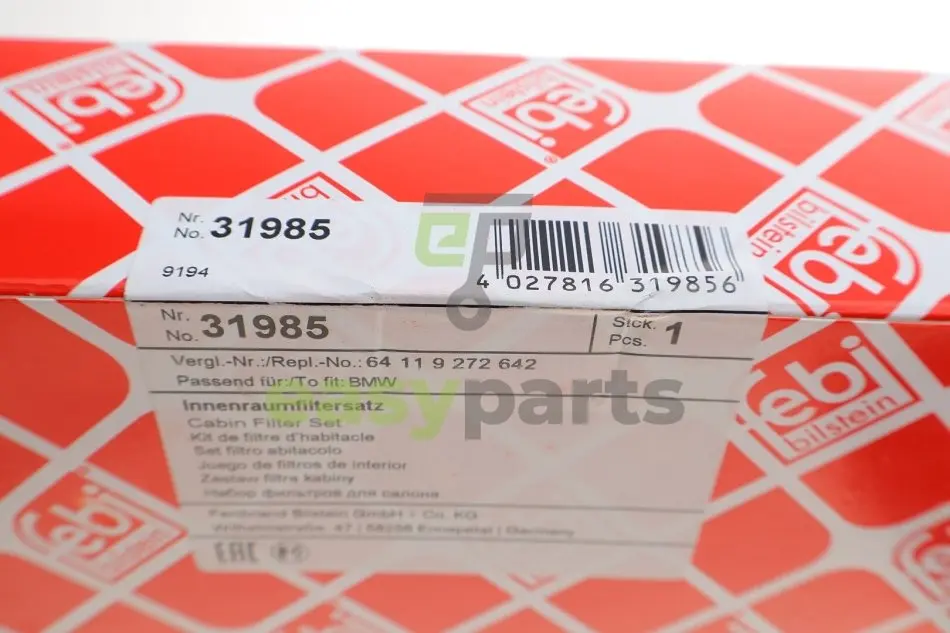 Фільтр салону BMW 5 (F10)/7 (F01) 2.0-6.0 08-(вугільний) (к-кт 2 шт.) FEBI BILSTEIN 31985
