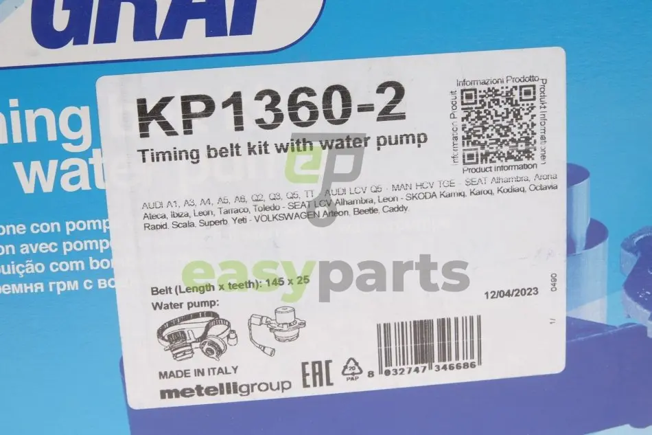Комплект ГРМ + помпа Audi A3-A6/Skoda Octavia/VW Caddy/Golf/Passat 1.6-2.0TDI 12-(145x25)(PA1360A-8) GRAF KP1360-2