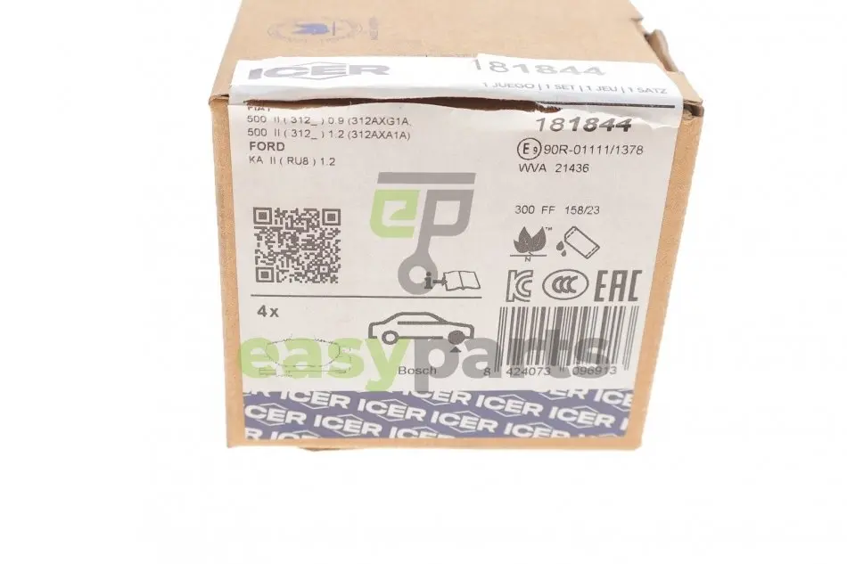 Колодки гальмівні (передні) Fiat 500 07-/Ford Ka 08-16 (+датчики) ICER 181844