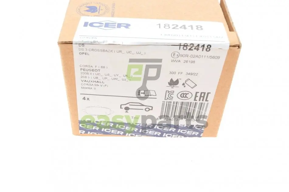 Колодки гальмівні (задні) Citroen C4 20-/Peugeot 2008/208/Opel Corsa F 19-/Mokka 20- ICER 182418