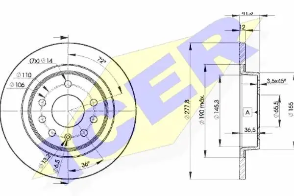 Диск гальмівний (задній) Opel Signum/Vectra C 02-09 (278х12) (повний) ICER 78BD9115-2