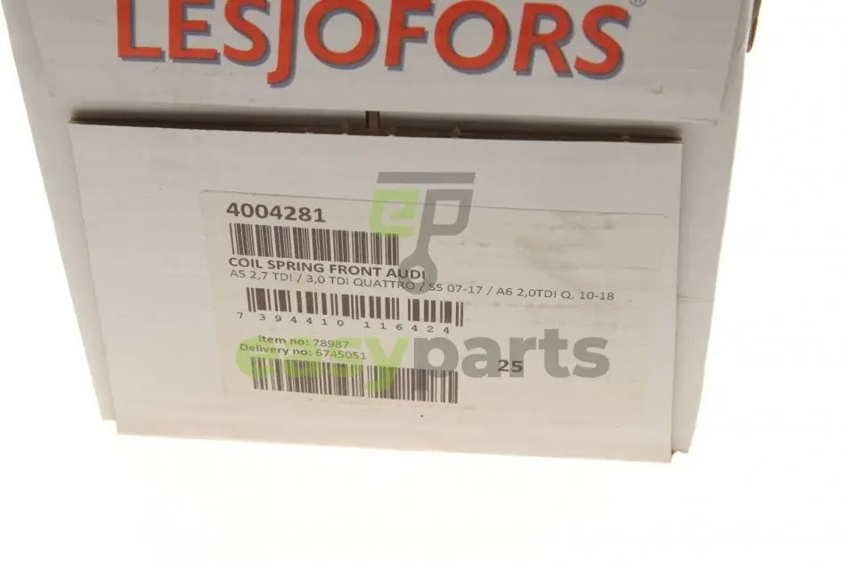 Пружина (передня) Audi A4 3.0TDI quat. 08-15/A6 2.0TDI/3.0TDI (АКПП) 10-18 (седан/ун)(спорт.х.ч) LESJOFORS 4004281
