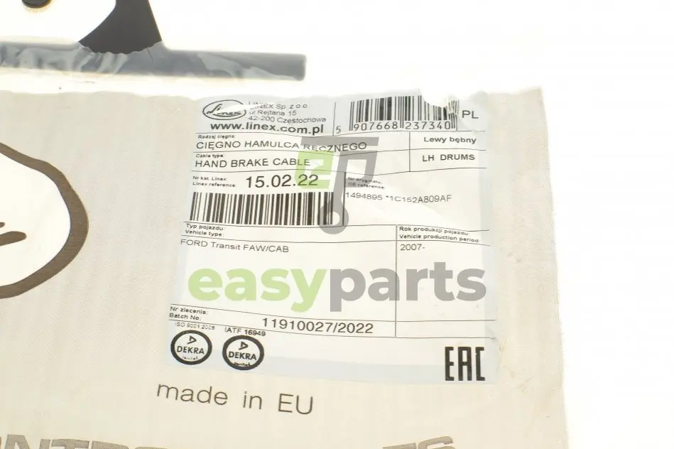 Трос ручника (L) Ford Transit 2.0/2.4DI/2.4TDCi 00-06 (1650/1353 мм) LINEX 15.02.22