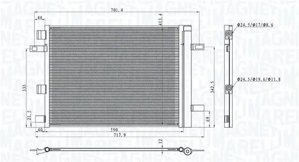 DB Радіатор кондиціонера (конденсатор) з осушувачем W177, V177, W247, C118, X118 MAGNETI MARELLI (Магнети Марелли) 350203101200