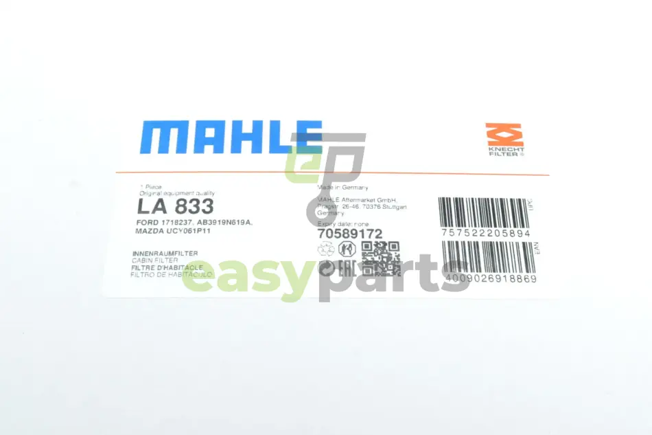 - LA833 MAHLE / KNECHT подходит к таким маркам/моделям авто: