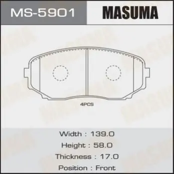 Колодка тормозная передняя Mazda CX-7 (07-12), CX-9 (17-) MASUMA MS5901