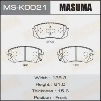 Колодка тормозная передняя MASUMA MSK0021