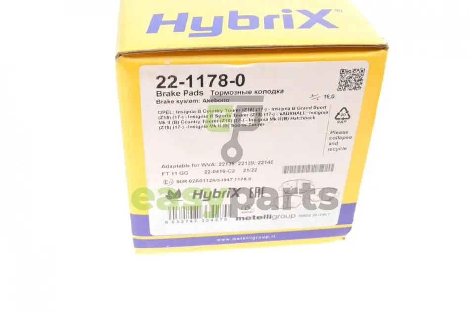Колодки гальмівні (передні) Opel Insignia 1.5-2.0 CDTi 17- Metelli (Метелли) 22-1178-0