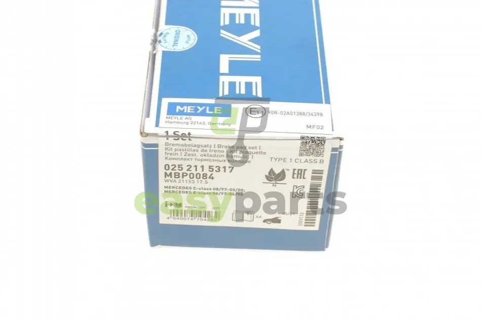 Колодки гальмівні (передні) MB 190 (W201)/C (W202)/E (A124)/(C124) 88-03 MEYLE (Мейли) 025 211 5317