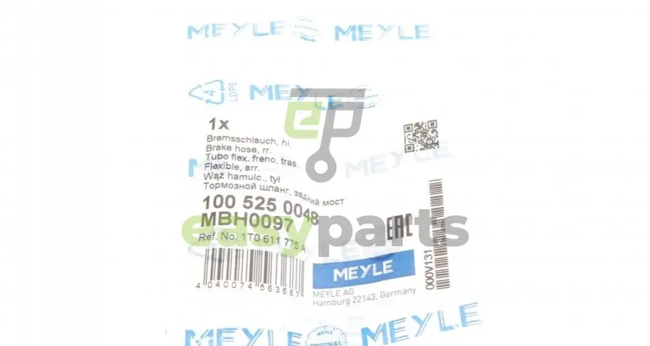 Шланг гальмівний (задній) VW Touran 1.4-2.0D 03-10 (L=233mm) MEYLE (Мейли) 100 525 0048
