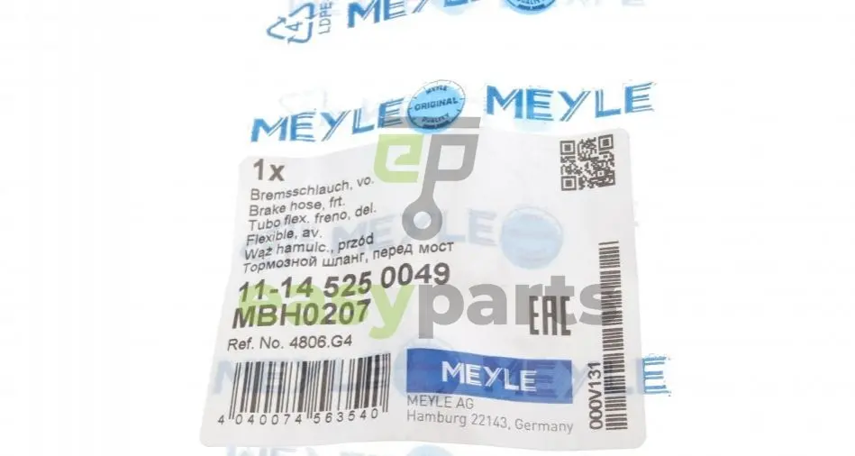 Шланг гальмівний (передній) Citroen Berlingo/Peugeot Partner 08- (L=450mm) MEYLE (Мейли) 11-14 525 0049
